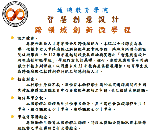 一、國立勤益科技大學通識教育學院智慧創意設計跨領域創新微學程施行細則